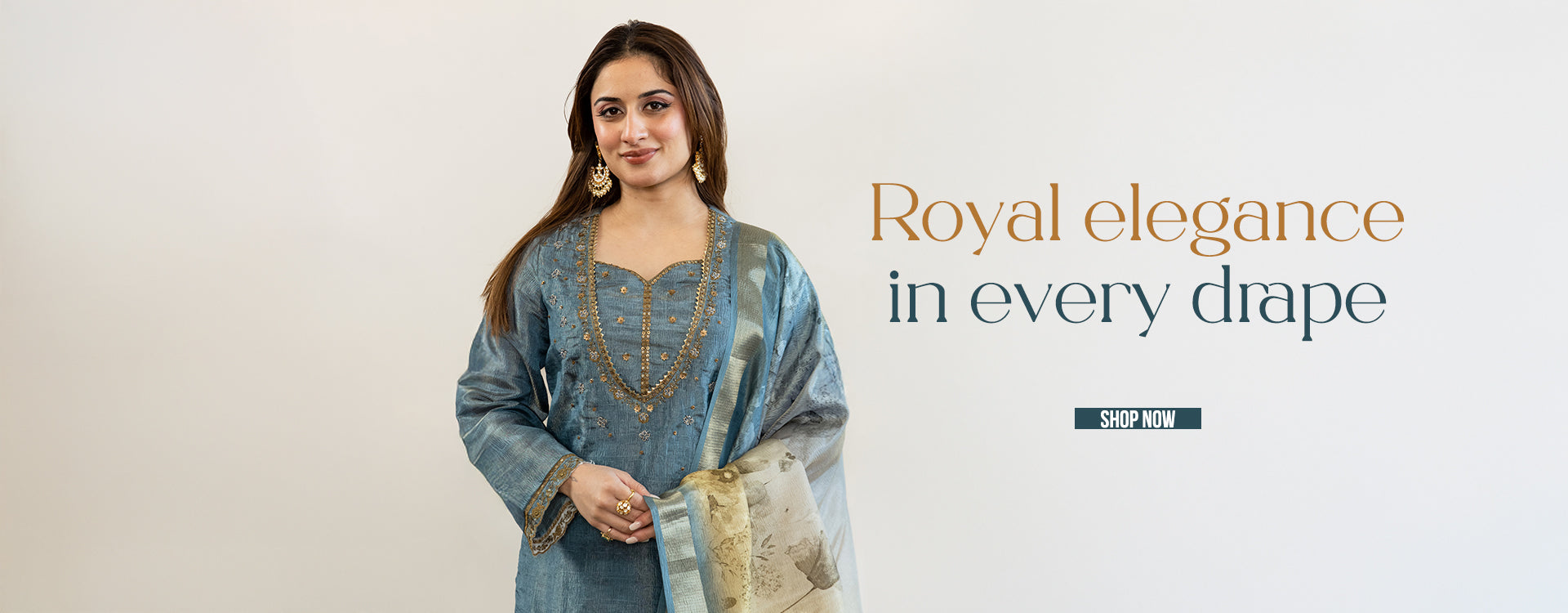 Navy Teal Dolla Silk Kurta Pant and Dupatta Set